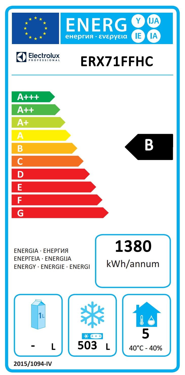 • Classe energetica (in riferimento al Regolamento UE 2015/1094): B